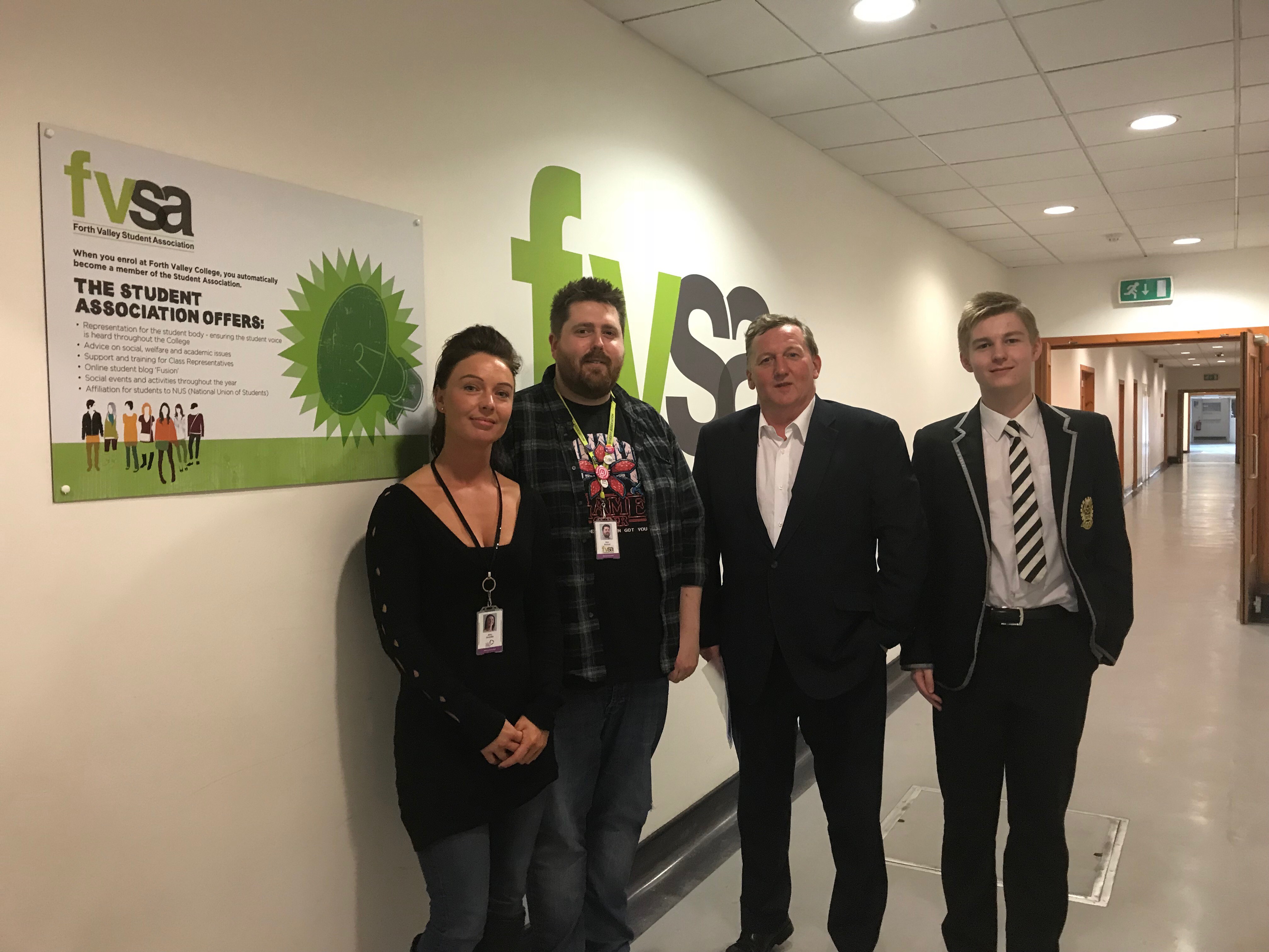 Representatives of Forth Valley Students Association met with Scottish Labour MSP Alex Rowley and set out the key concerns which have been raised with the Scottish Government as part of their campaign to raise awareness and build support for the action they are calling for. The Student Association argues that there is a need to increase support for bursaries for college students particularly from poorer backgrounds and want to see the threshold at which students start paying back loans increased as well as increased support for mental health support in colleges.