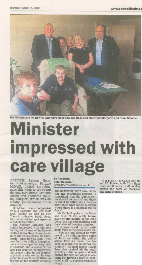 16 AUG Central Fife Times 16.08.18 - Lumphinnans Care Village Post Author: Alex Rowley http://www.alexrowley.org/about/
