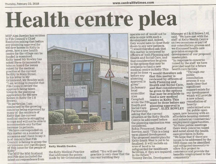 22 FEB Central Fife Times 22.02.18 - Kelty Health Centre Post Author: Alex Rowley http://www.alexrowley.org/about/