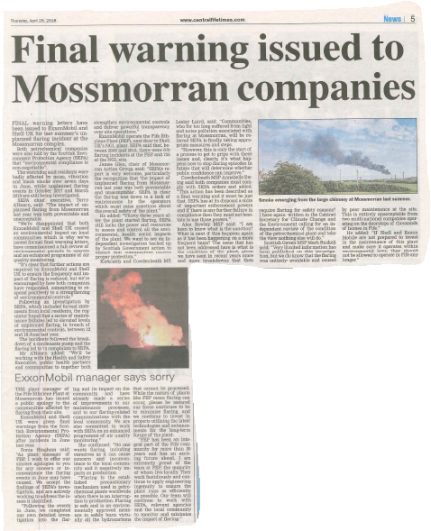 26 APR Central Fife Times 26.04.18 - Mossmorran Post Author: Alex Rowley http://www.alexrowley.org/about/