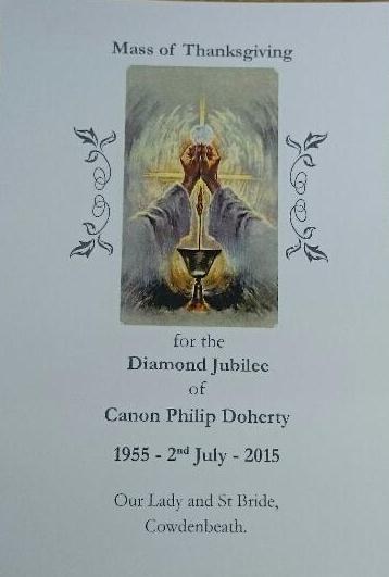 I had the great privilege of attending a Mass of Thanksgiving at Our Lady and St Bride Church Cowdenbeath for the Diamond Jubilee of Canon Philip Doherty.