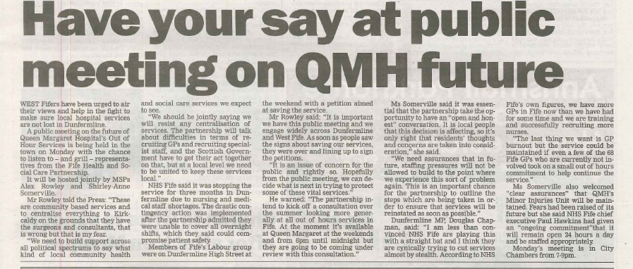 10 MAY Dunfermline Press 10.05.18 - Queen Margaret Hospital Out of Hours Post Author: Alex Rowley http://www.alexrowley.org/about/