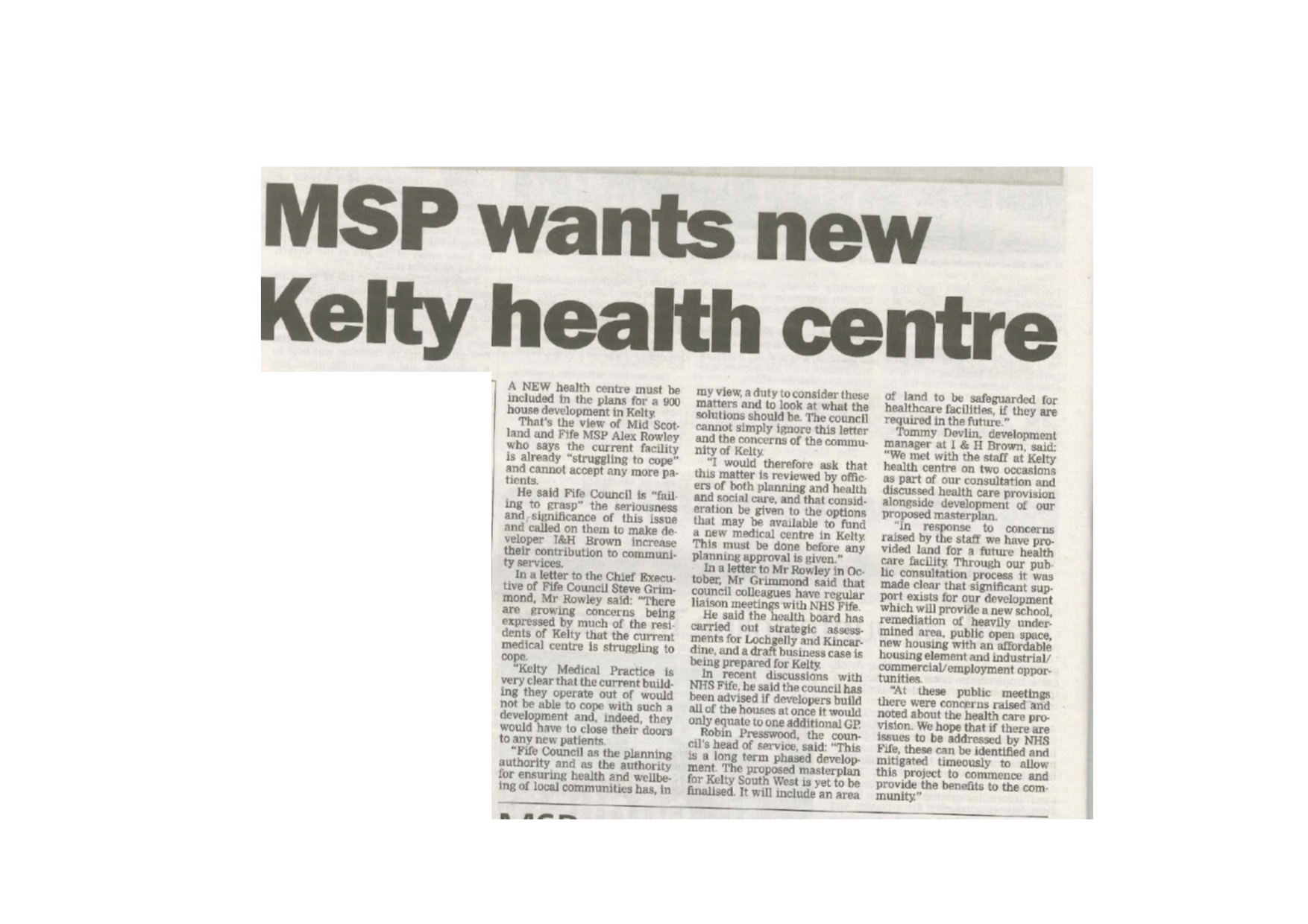 15 FEB Dunfermline Press 15.02.18 - Kelty Medical Centre Post Author: Alex Rowley http://www.alexrowley.org/about/