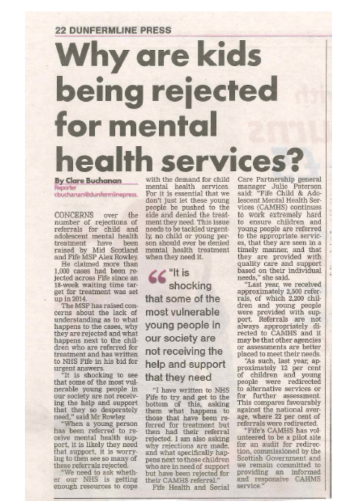 Dunfermline Press 19/01/18 - CAMHS