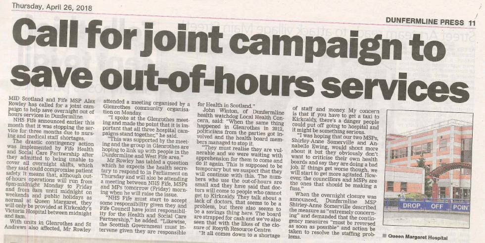 26 APR Dunfermline Press 26.04.18 - Out of Hours Services Post Author: Alex Rowley http://www.alexrowley.org/about/
