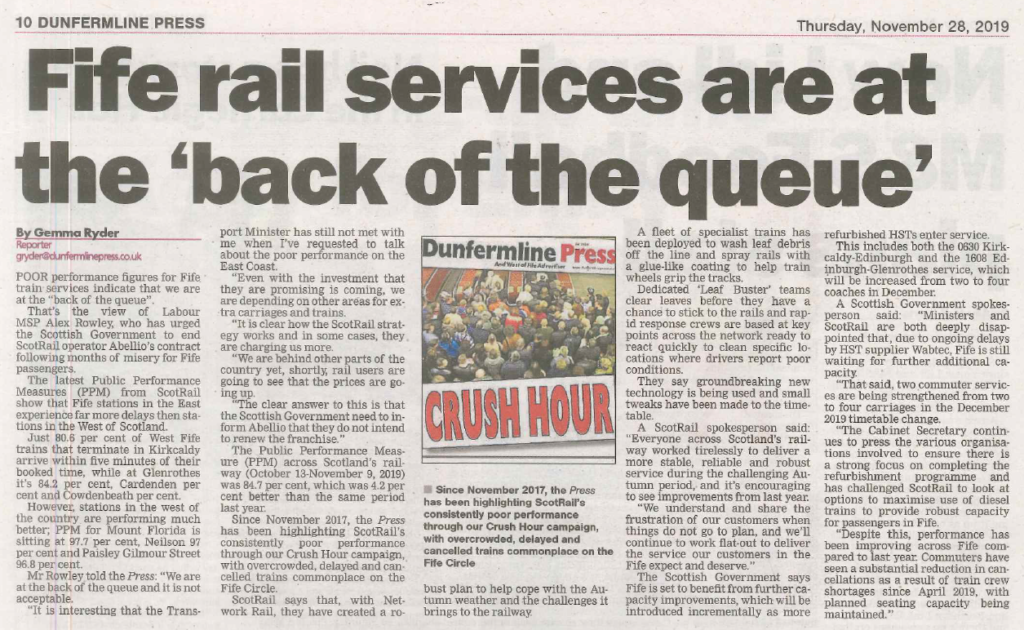 28 NOV Dunfermline Press 28.11.19 - Fife Rail Services Post Author: Alex Rowley http://www.alexrowley.org/about/