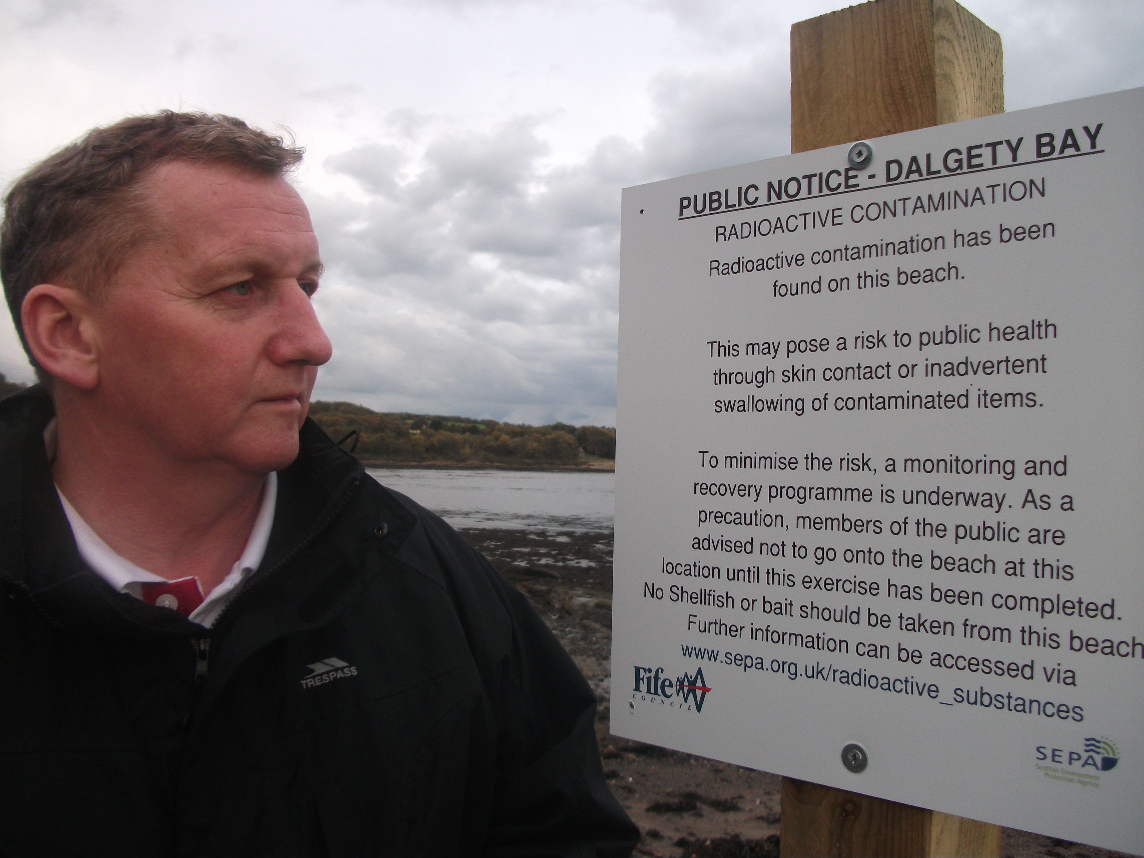 Alex Rowley, Fife Labour Leader, has visited Dalgety Bay to reassure residents in the wake of radiation reports and worrying coverage in the media. He has spoken with community council leader, Colin McPhail, to ensure movement forward of a solution to the increasing number of particles found.