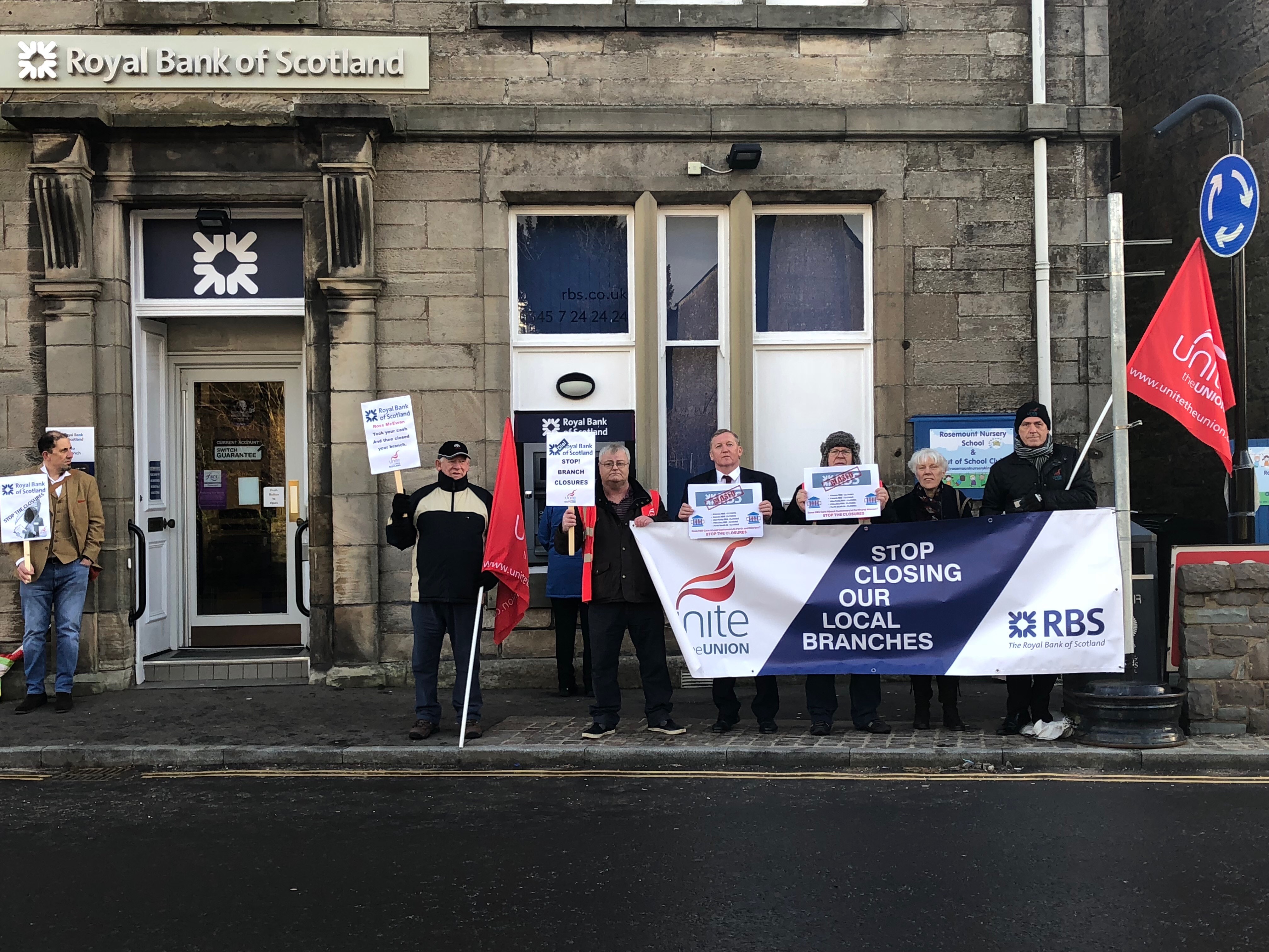 “When I met the bank officials to object to the closure of the Kelty branch, they told me we have access to a branch in Cowdenbeath and one in Kinross both within a few miles. Then they closed Cowdenbeath and now they are closing Kinross and their executives don’t seem to care what impact these closures are having on local communities and people’s ability to get into a bank”.