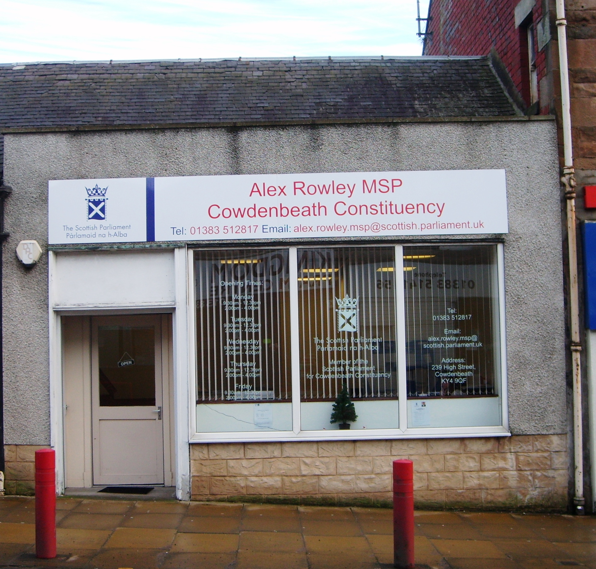 This year was my first year as an MSP after being elected at the end of January and much of my costs in this year have been for setting up my constituency office. My constituency office is open Monday to Friday and is based in Cowdenbeath which is a central point for the whole constituency which stretches from Dalgety Bay and Rosyth up to Cardenden and Ballingry. My office is on the High Street and is accessible by bus (No 19), train and there are also car parks on Stenhouse Street, just opposite us.