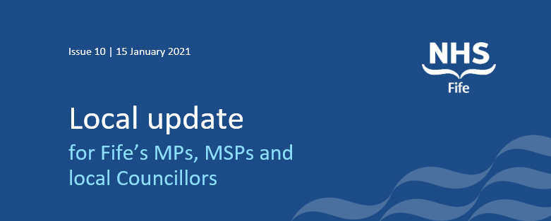 This update is part of our on-going commitment to keep you informed of the latest developments at NHS Fife that may be of interest to you and your constituents, this includes information on our on-going response to the COVID-19 pandemic, remobilisation of our services, service changes and operational updates, along with signposting to the latest media updates issued by NHS Fife. Updates, which we aim to provide weekly, are also issued on our refreshed website www.nhsfife.org which provides a hub of information and guidance as well as our established Facebook, Twitter and Instagram pages.