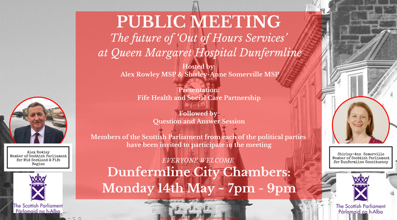 I recently hosted a public meeting in Dunfermline on the overnight closures of the Fife out of hours services. This was a joint meeting with Shirley-Anne Somerville and myself, and featured a presentation from Fife Health and Social Care Partnership.