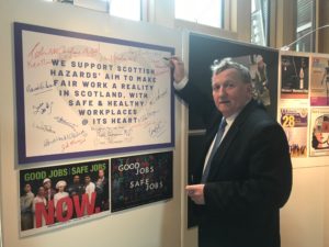 Mid Scotland and Fife MSP Alex Rowley gave his support in the Scottish Parliament to the Scottish Hazards campaign aiming to make fair work a reality in Scotland with safe and healthy workplaces at its heart.