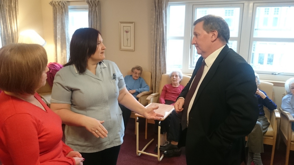 Alex Rowley MSP visited a care home in his Cowdenbeath constituency this week to highlight the need for the introduction of the ‘living wage’ for workers across the care sector in Fife and Scotland.